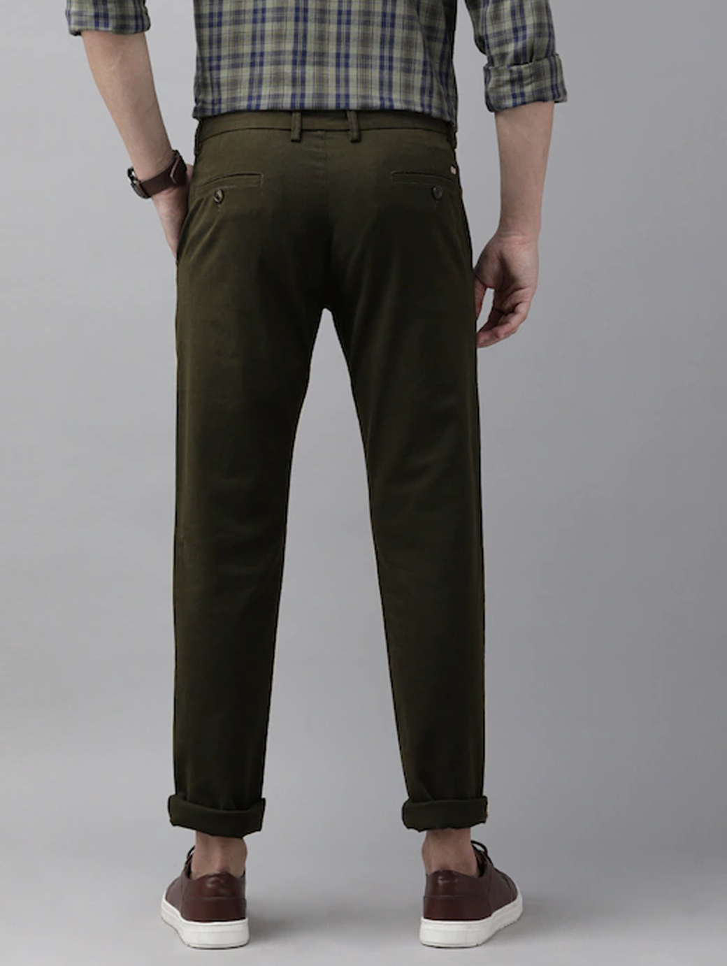 - Green woven trousers