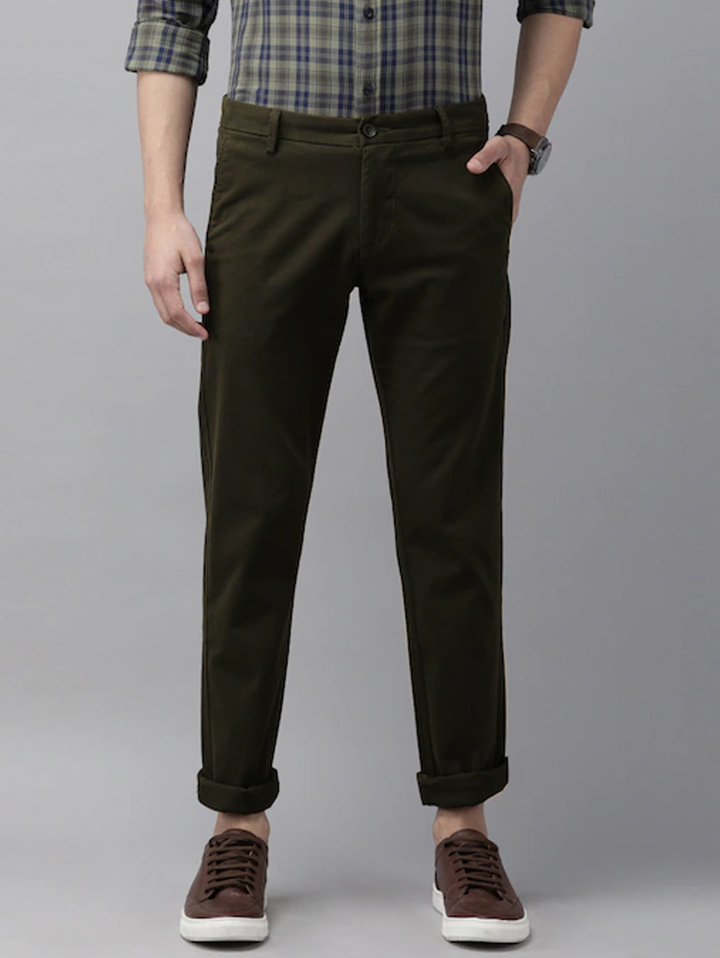 Arrow's casual trousers help you make an effortless statement. This pair features a flat front and is made with solid stretch cotton fabric.