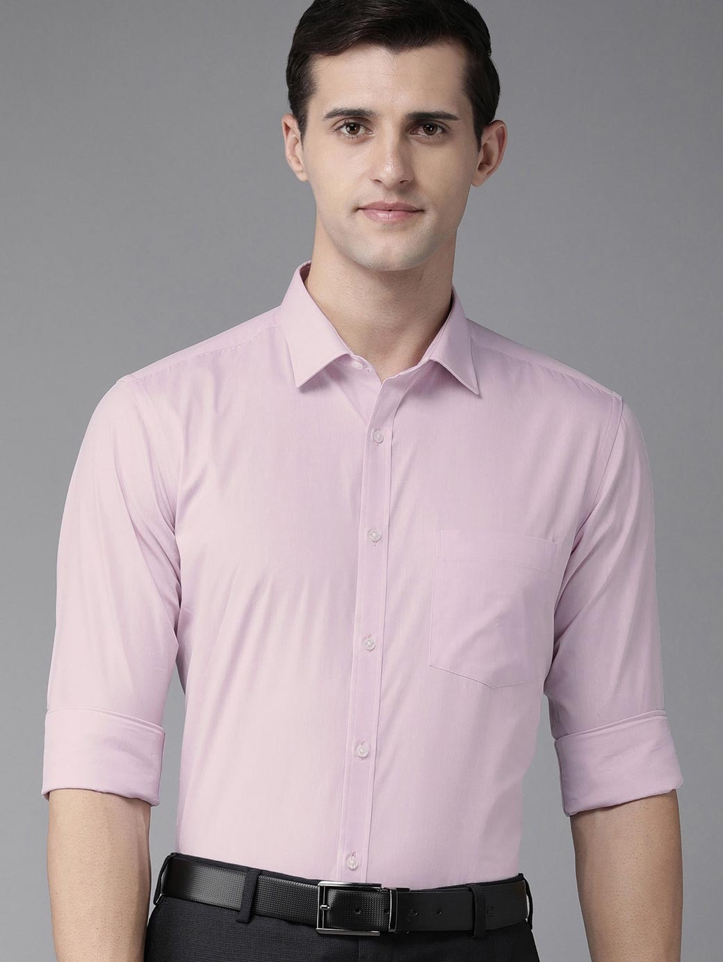 Men Lavender Solid Slim Fit Pure Cotton Formal Shirt
