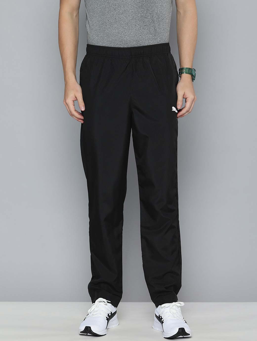 Cuffed woven track pants from PUMA will help you get the best out of your training and leisure activities. Also available in shorter lengths. DETAILS : Black brand logo printed track pants Elasticated waistband with drawcord Cuffs with inner adjustable elasticated drawcord Side-seam pockets Breathable mesh lining