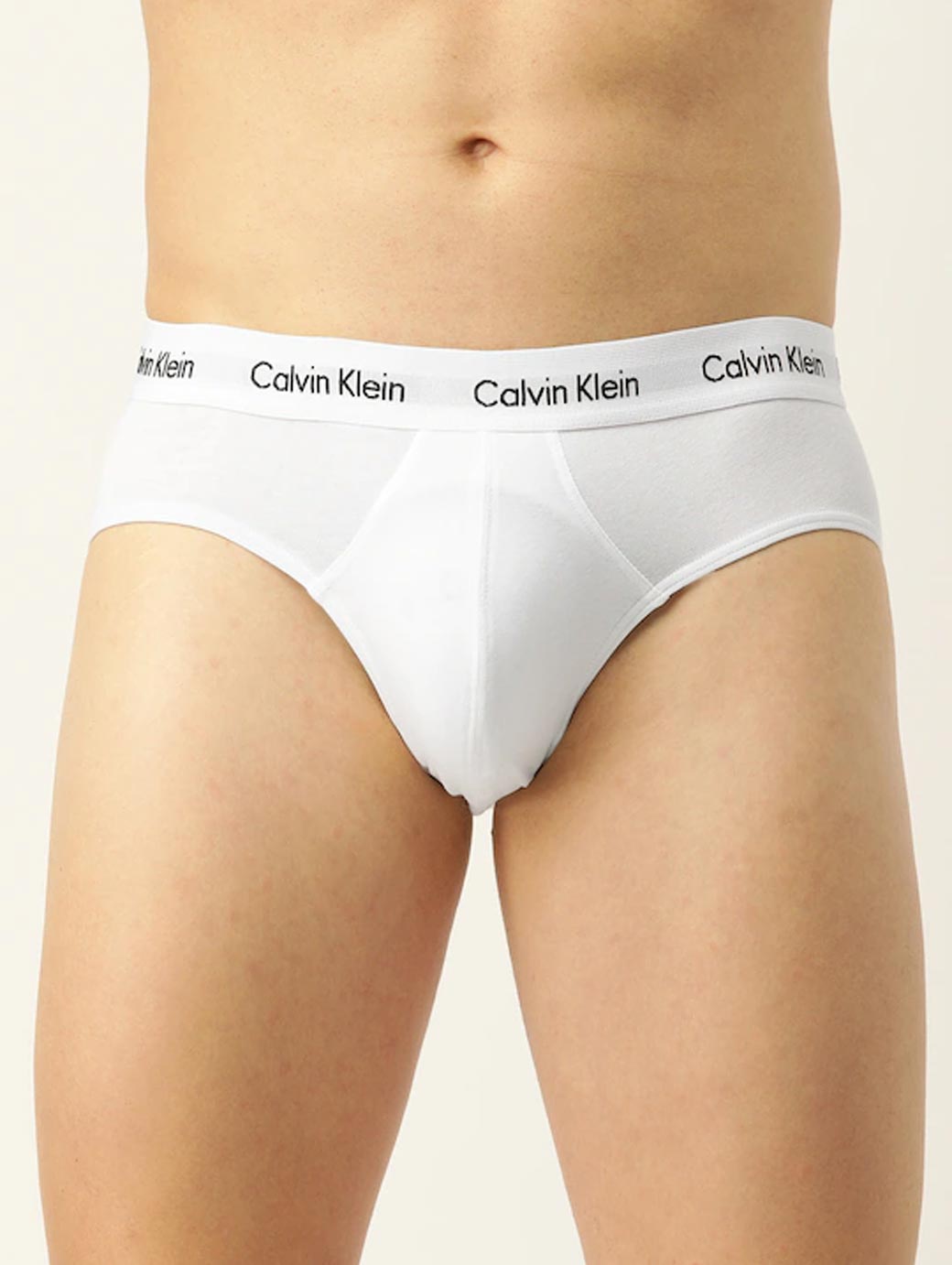 Black Solid Briefs, has a contrast outer elasticated waistband, a double-layered contoured front pouch and elasticated leg openings