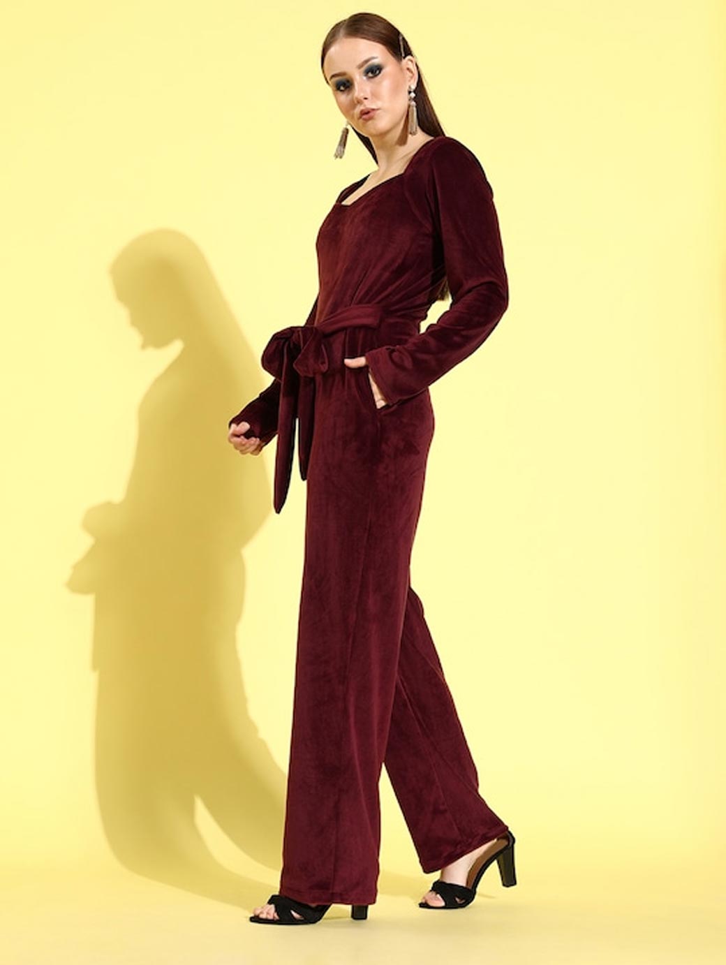 Women Burgundy Velvet Basic Jumpsuit
