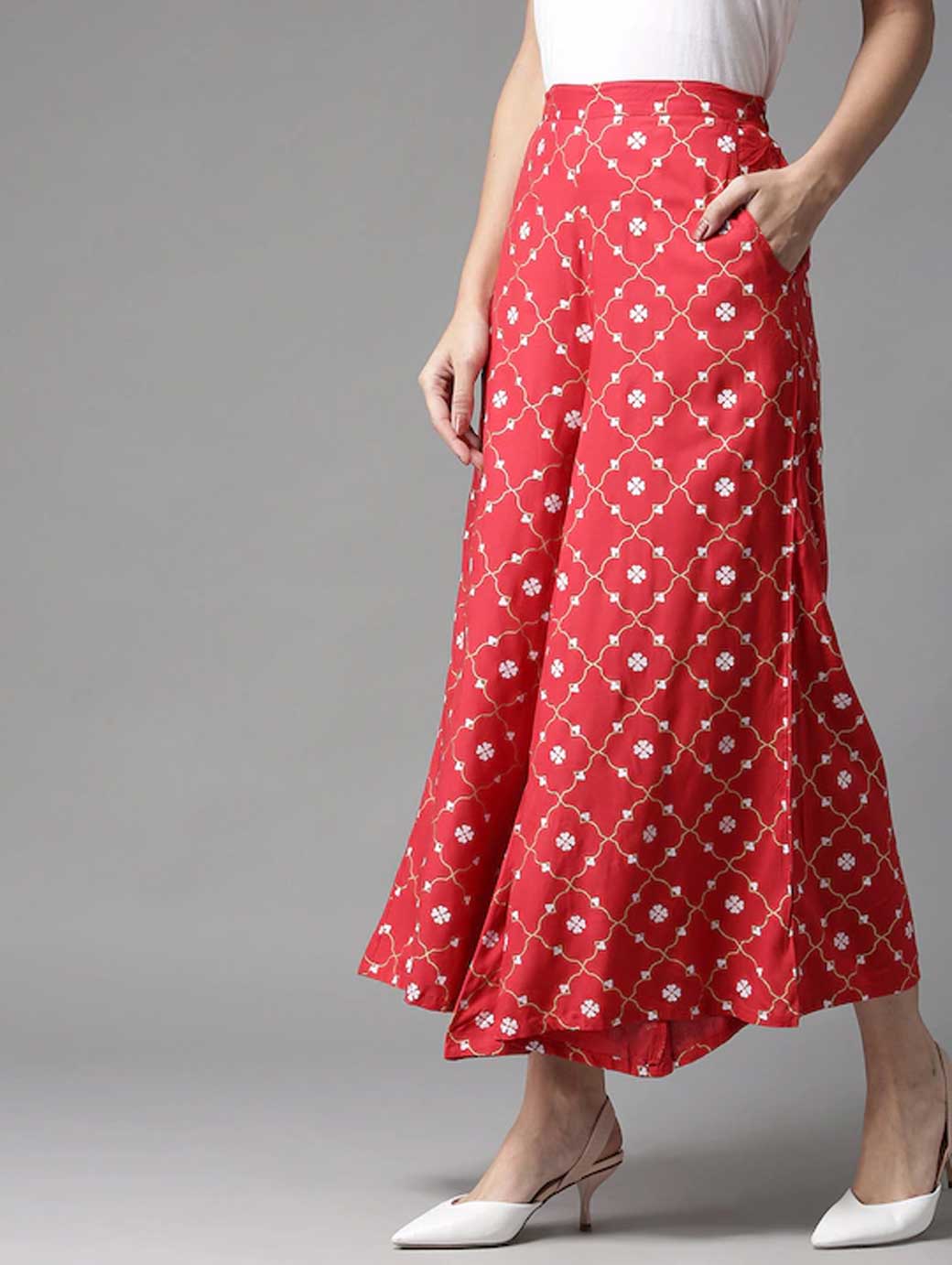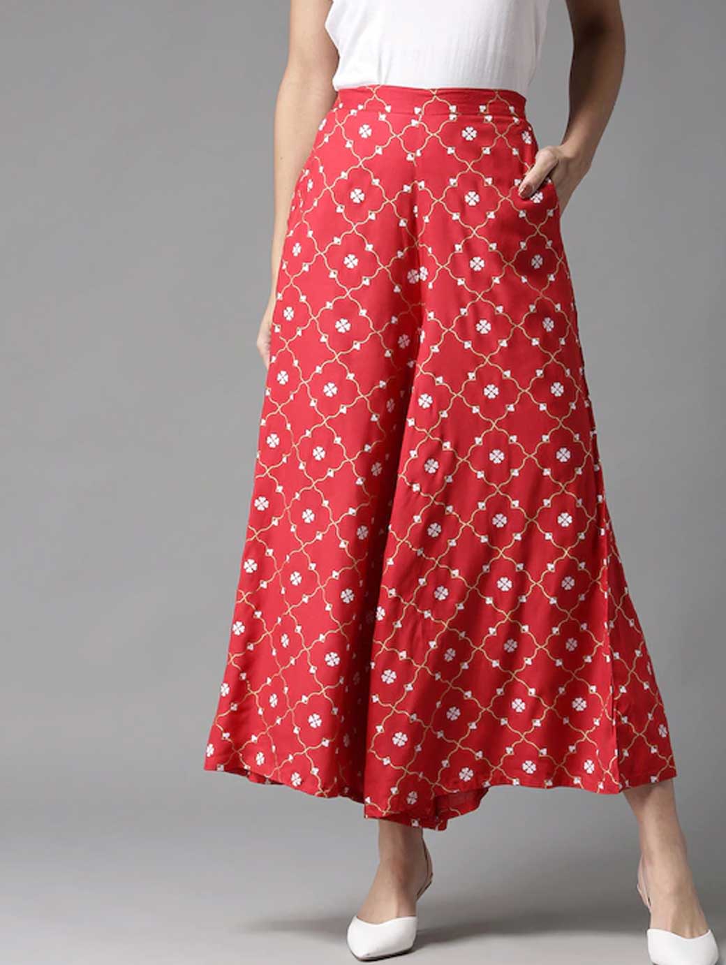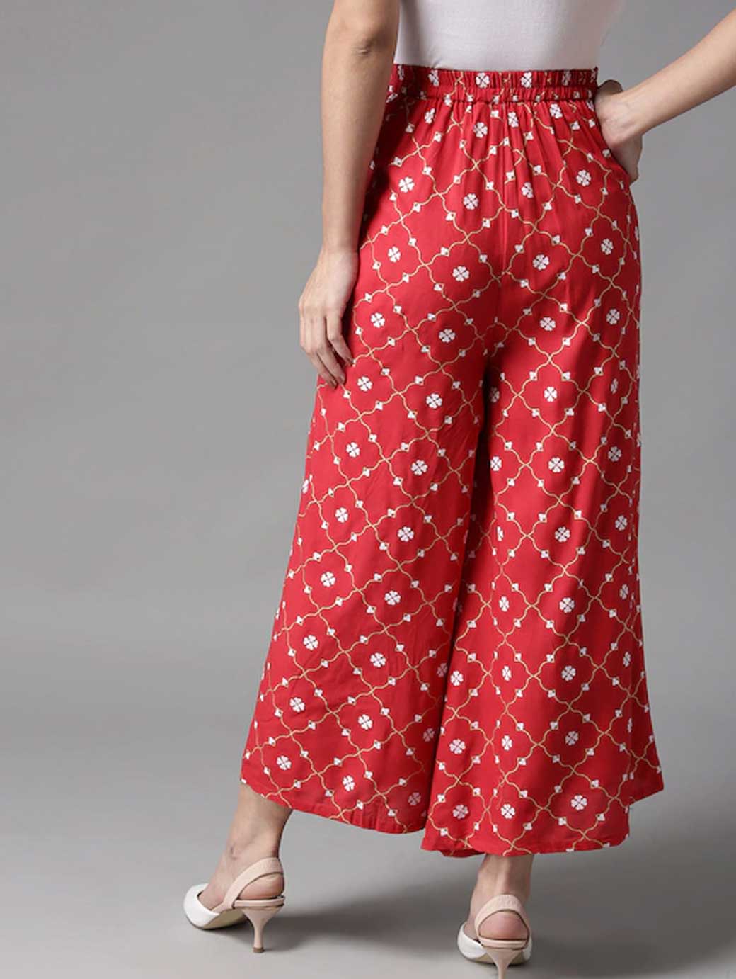 Women Red & White Printed Wide Leg Palazzos