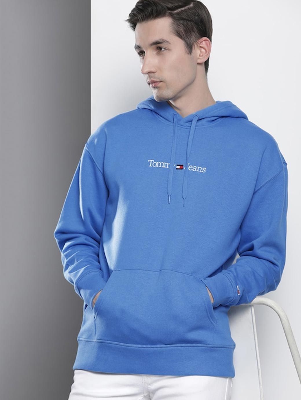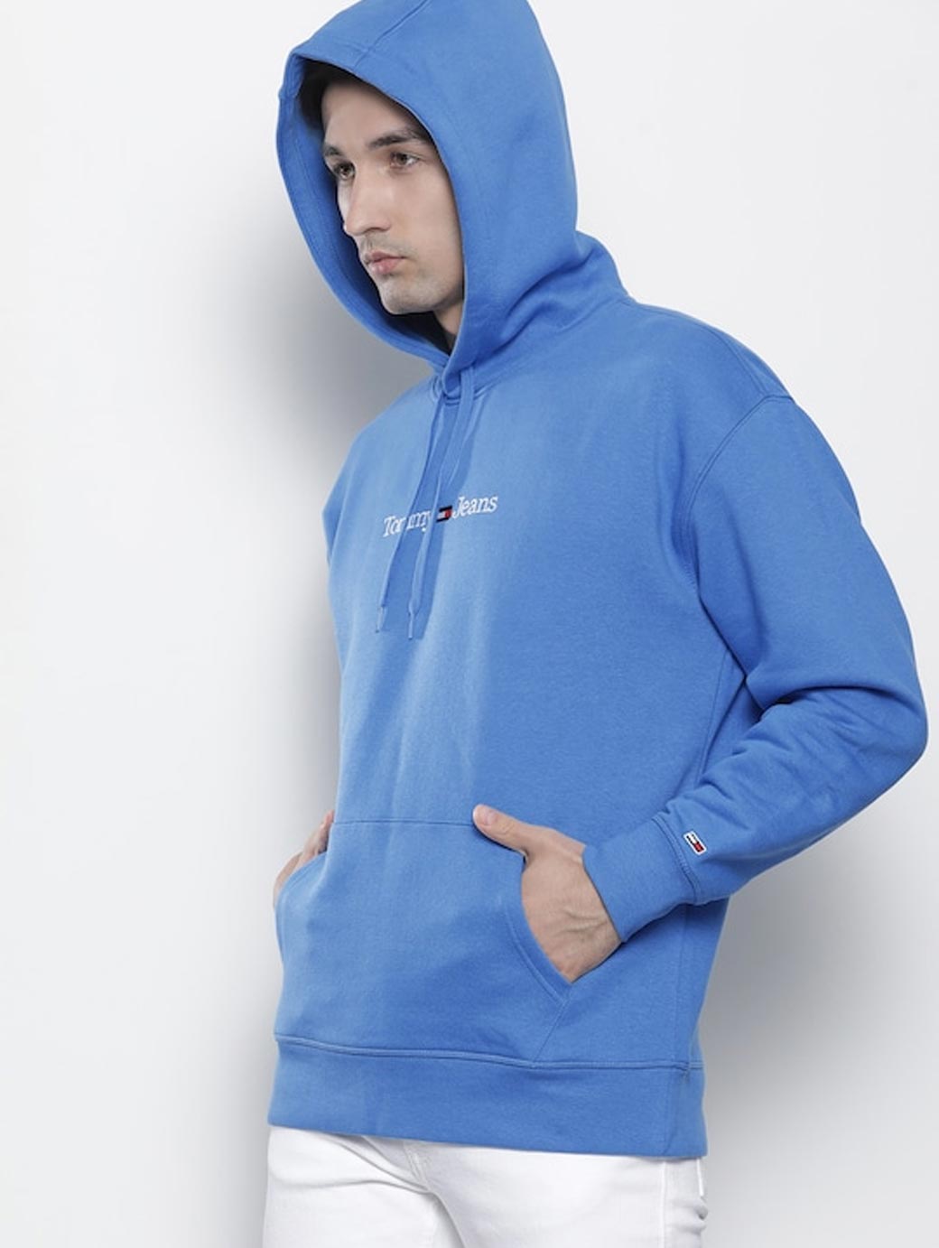 Blue brand logo embroidered [pullover sweatshirt has a hood, 1 kangaroo pocket, long sleeves, closure, ribbed hem