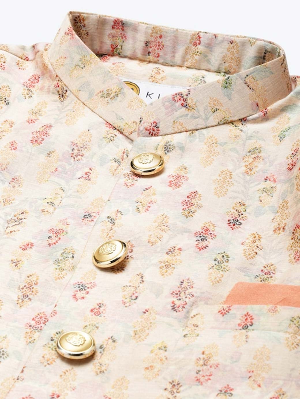 Cream-coloured woven design kurta, has mandarin collar and long sleeves Pink solid kurta, has a mandarin collar and long sleeves Off-white solid dhoti, has an elasticated waistband with drawstring closure