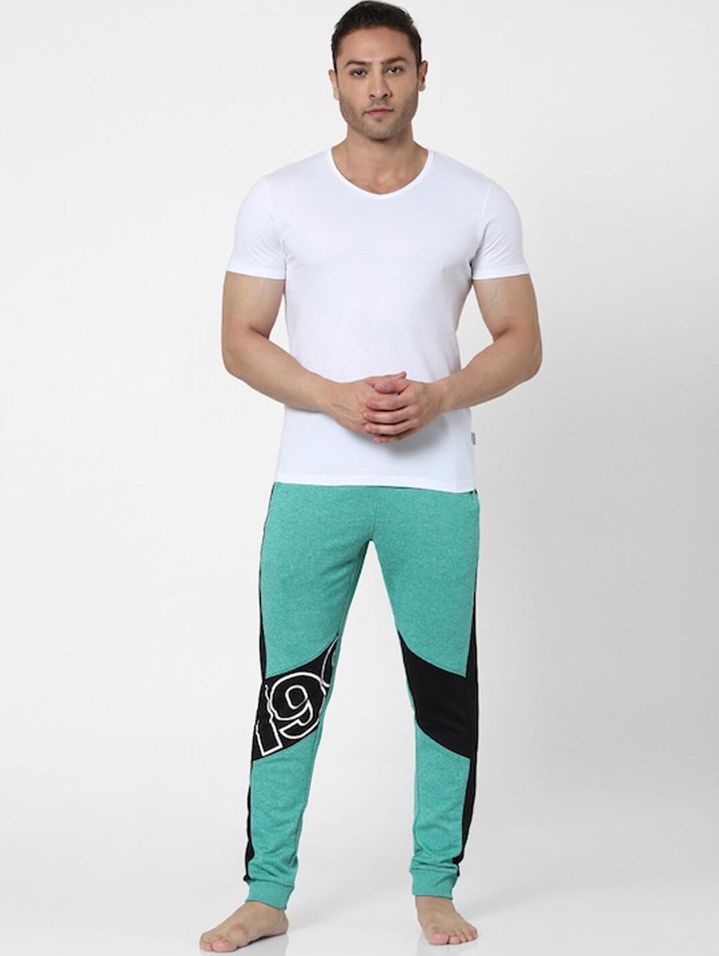 Pack Of 2 Solid Lounge T-shirts: White & black Solid Regular length V neck Short, regular sleeves Knitted cotton fabric