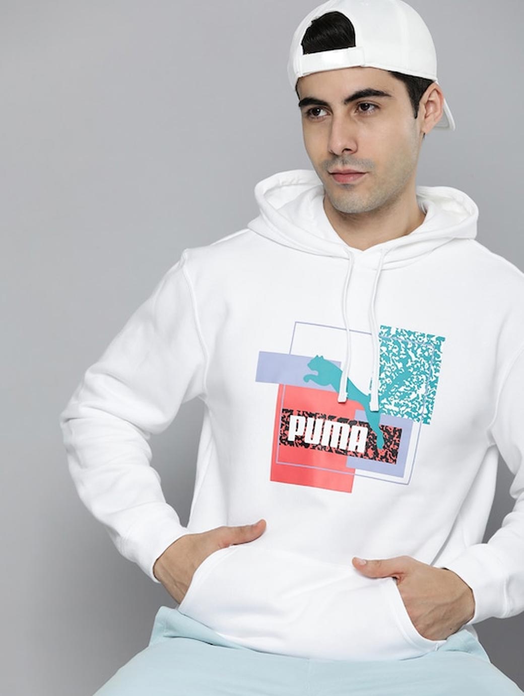 Features: White printed sweatshirt has a hood 1 pocket, long sleeves Regular fit Hood with flat drawcord for an adjustable fit Kangaroo pocket for storage solutions Ribbed cuffs and hem Multi-coloured PUMA branding on chest Woven loop label on back of hem PRODUCT STORY : Sport-inspired but designed for the city life, our Brand Love collection looks stands out in every situation. This hoodie is no exception.