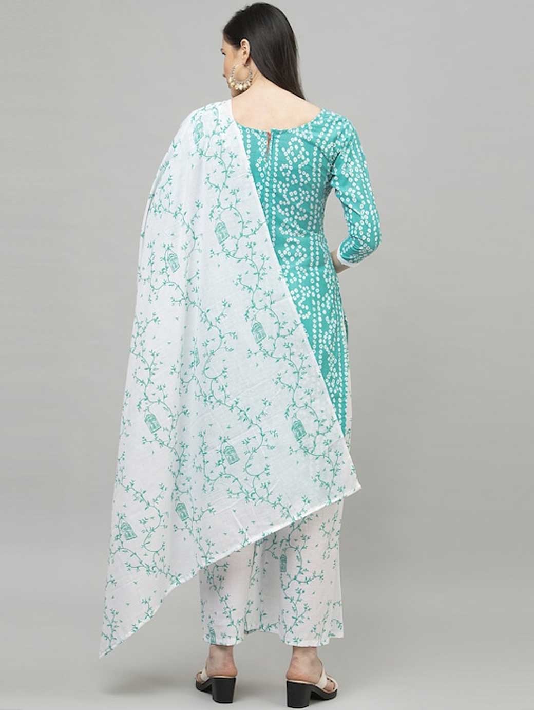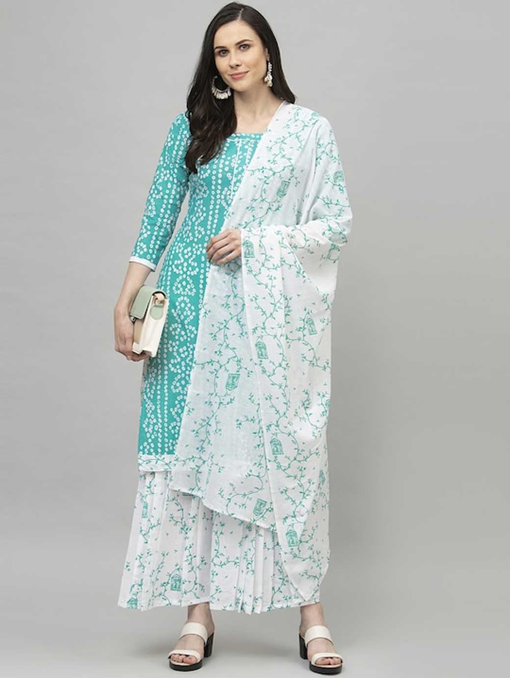 Turquoise Blue and white Ethic Motifs printed bottom fabric