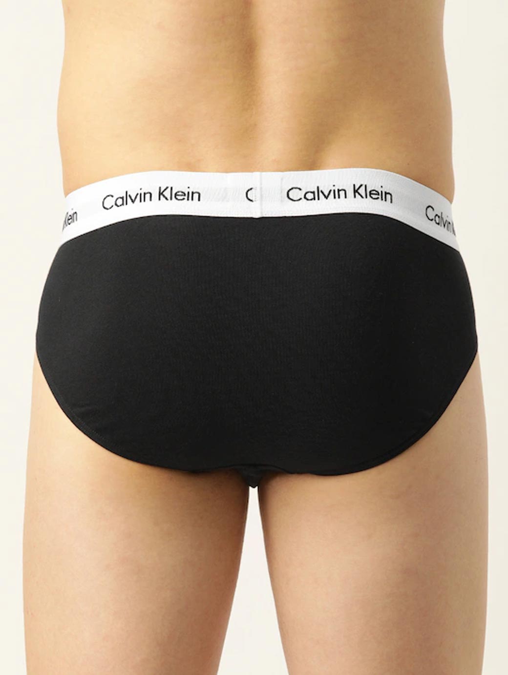Black Solid Briefs, has a contrast outer elasticated waistband, a double-layered contoured front pouch and elasticated leg openings