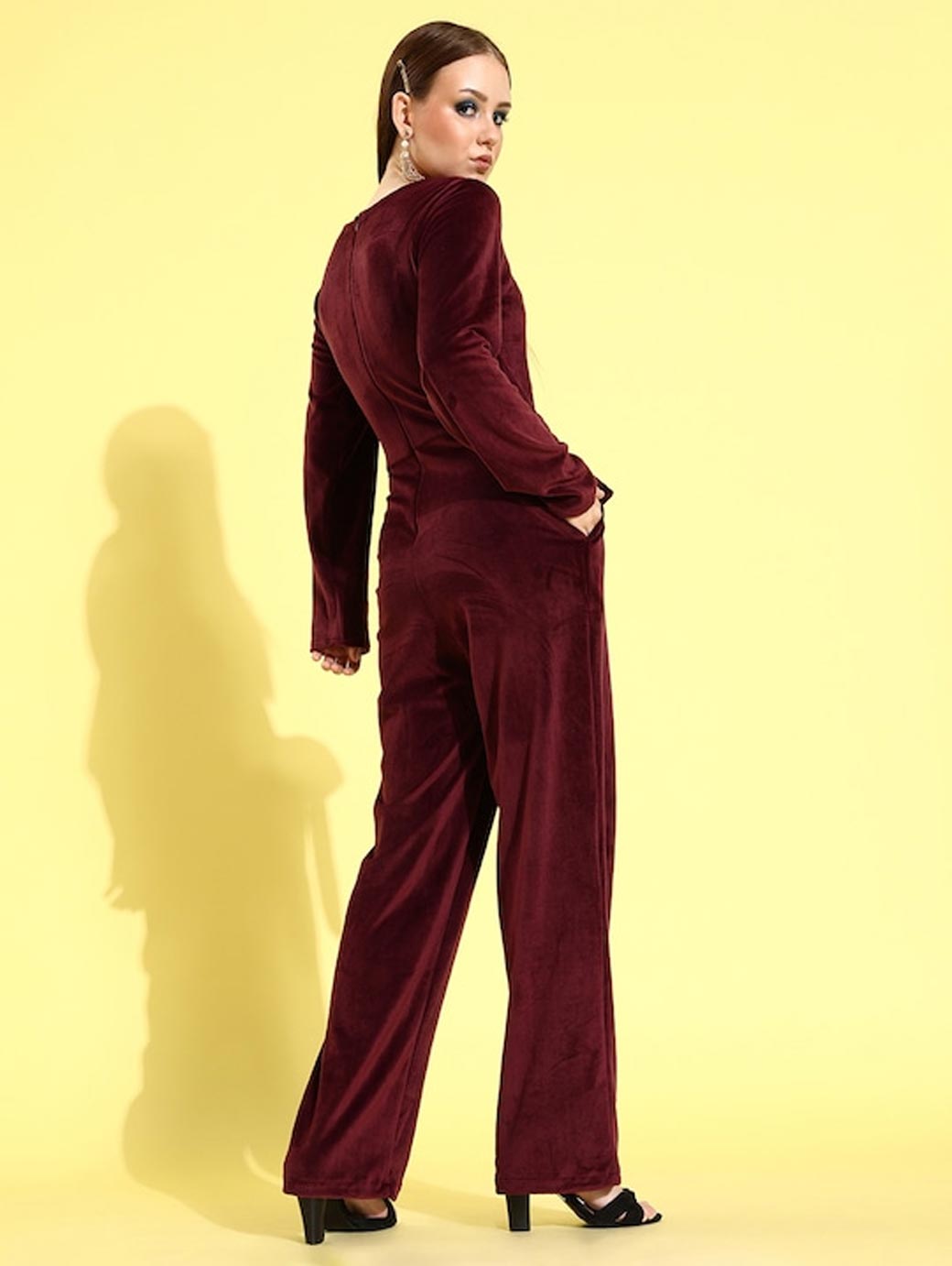 Women Burgundy Velvet Basic Jumpsuit