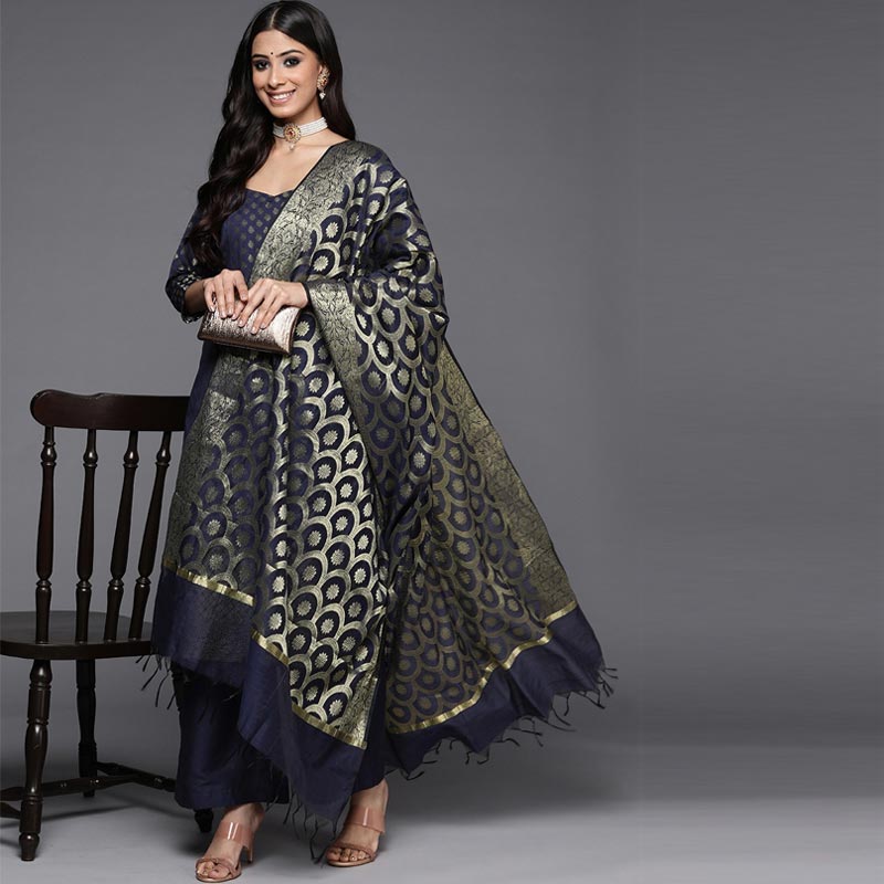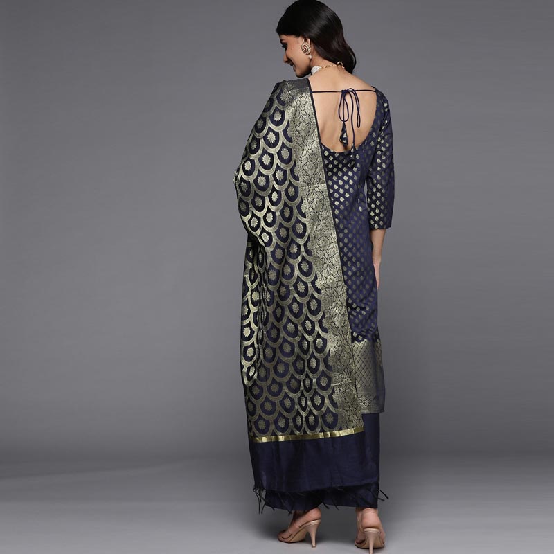 You'll look like the epitome of grace and beauty with this saree set. This saree and blouse blouse set is made of premium fabric and features an exquisite design. For a stunning look, pair it with heels and jewels.