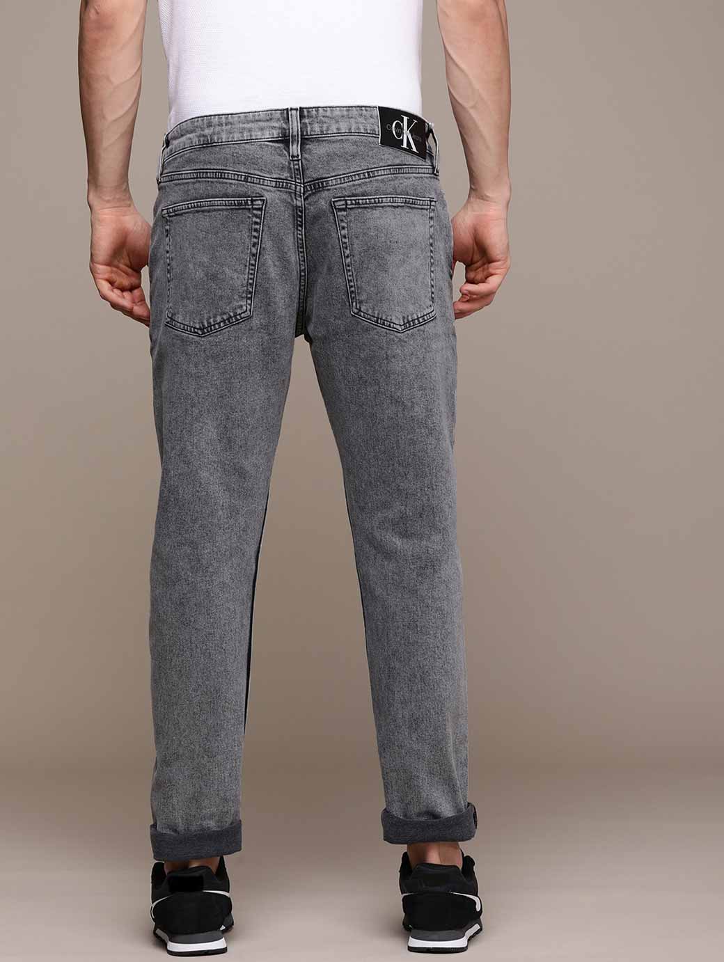 Men Grey Slim Tapered Fit Mid-Rise Heavy Fade Stretchable Jeans