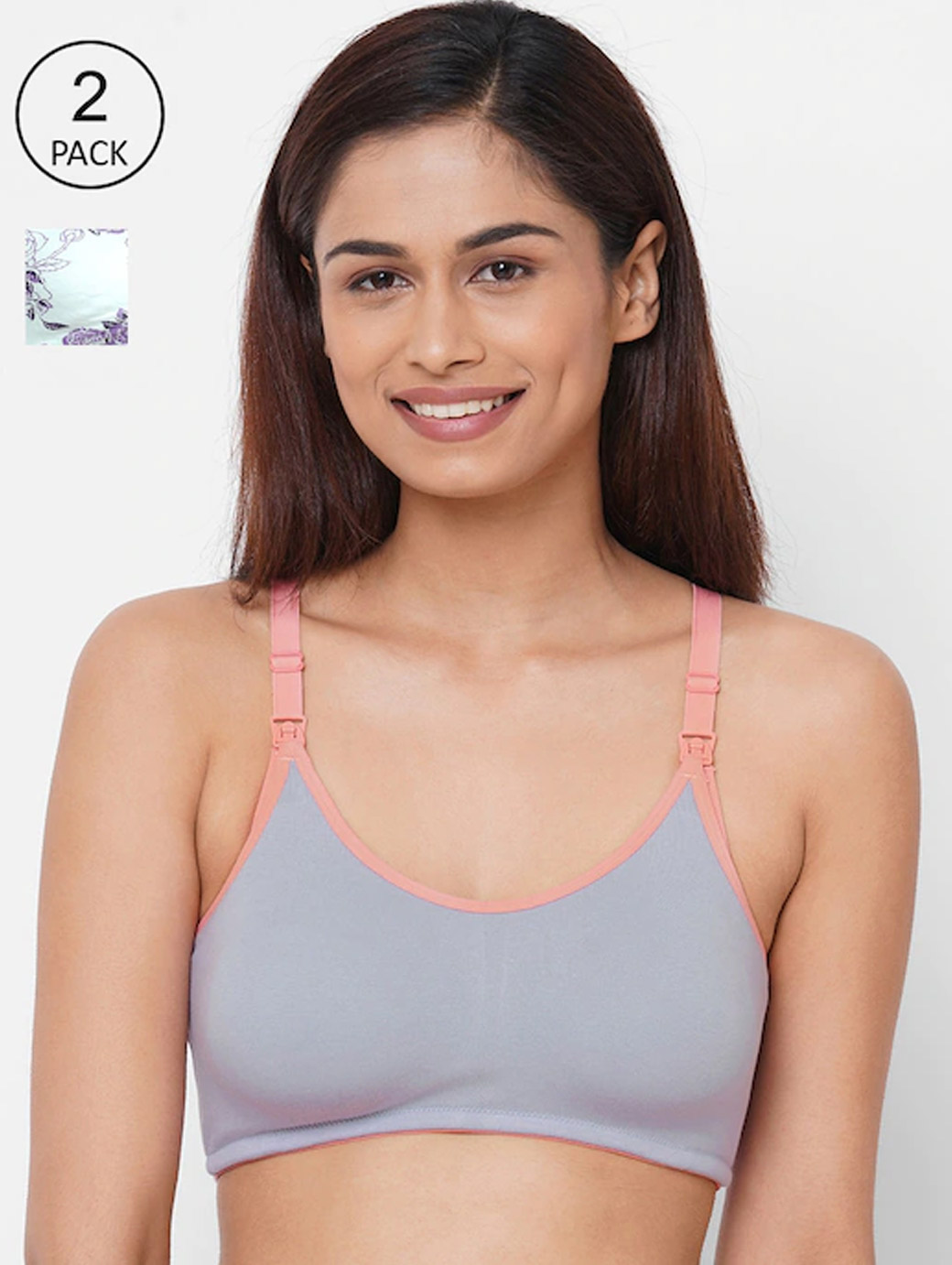 Pack Of 2 White and Grey solid full-coverage Maternity bra Non Padded and Non-Wired seamless cups Multiway straps and back closure Back style: Regular Feature: Organic